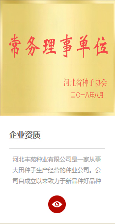 河北丰苑种业有限公司注册资金3000万,目前我公司现有人员25人,其中高职称2名,农艺师3名,研究生学历2人,95%以上为本科或大专学历。公司坐落于河北省省会石家庄市赵县;同时在开发区天山大街245号设有营销中心。是一家从事大田种子生产经营的种业公司。现有库房2000多平,一条10吨加工流水线,试验地100多亩,各类制种田两万多亩。公司在河北省内外现有成熟合作伙伴200多家,其中公司销售网络已覆盖河北省内及山东、河南、安徽等各地。